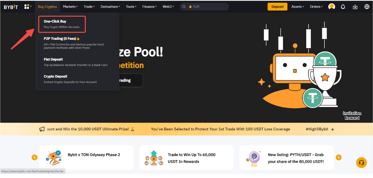Step 1: Click on Buy Crypto → One-Click Buy on the top left corner of the navigation bar to enter the One-Click Buy page.