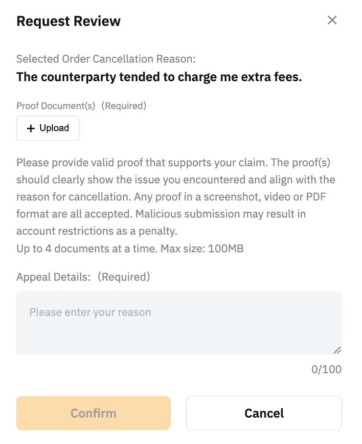 If you firmly believe the cancellation was due to the seller's fault, please submit an appeal by clicking Request Review and providing valid proof that supports your claim. The P2P Specialist will assist with your request within 1-2 working days.